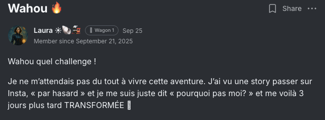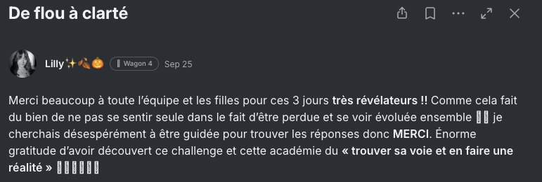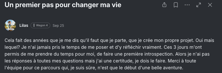 đJe suis la fondatrice de La Locomotive AcadĂ©mie, j'ai accompagnĂ© plus de 1000 femmes salariĂ©es Ă trouver leur voie et Ă construire un projet qui leur ressemble.